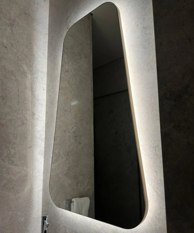 Çerçevesiz olarak tasarlanmıştır. Aynanın etrafında 10 mm MDF ahşap bulunmaktadır.