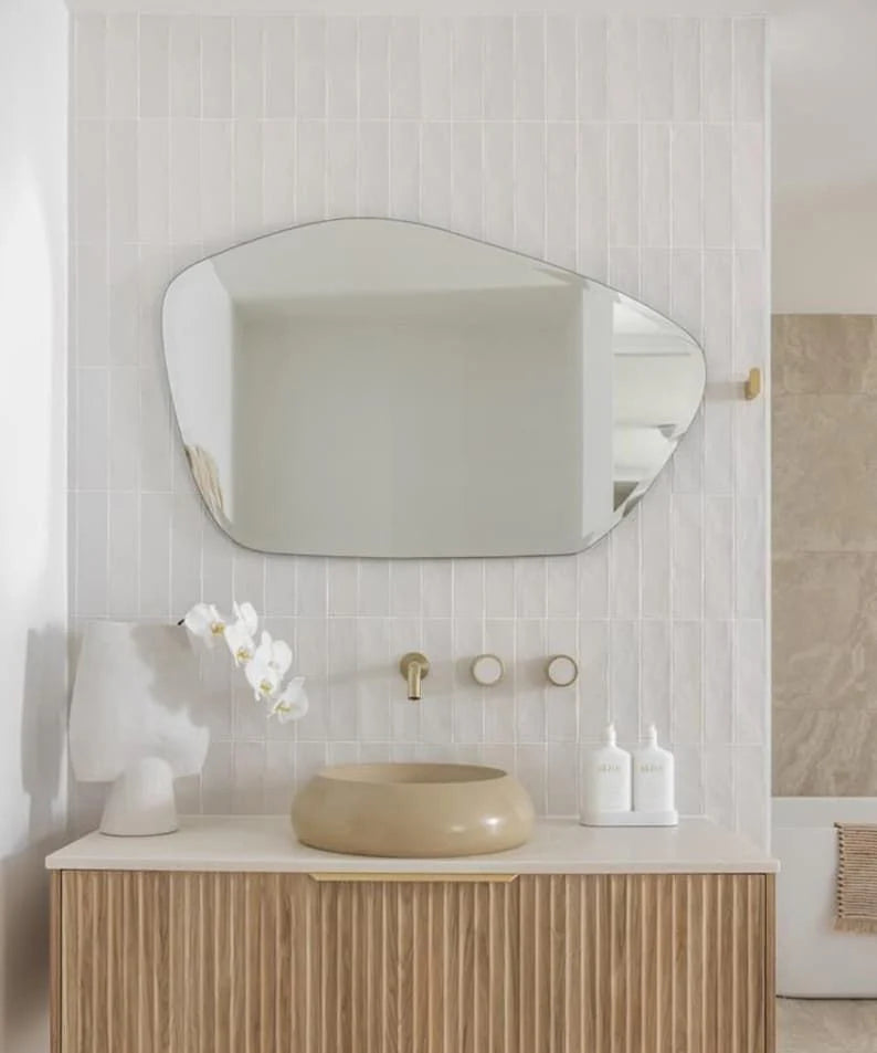 Çerçevesiz olarak tasarlanmıştır. Aynanın etrafında 10 mm MDF ahşap bulunmaktadır.